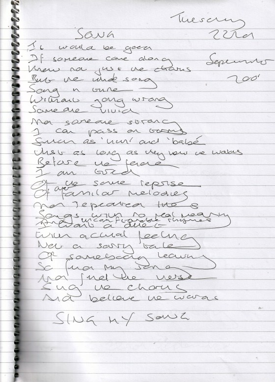 Sing My Song – Written Tuesday 22nd September 2009 (Aged 34)