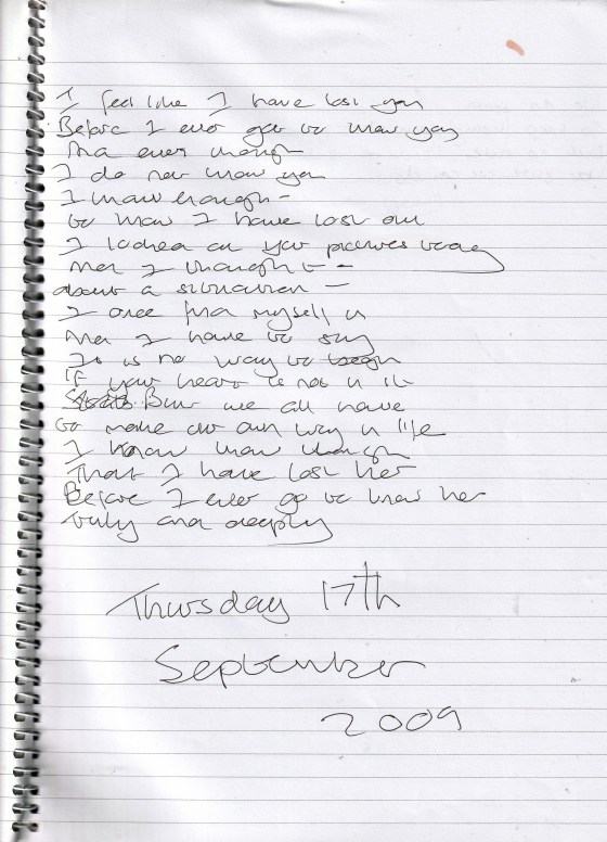 Truly and Deeply – Written Thursday 17th September 2009 (Aged 34)