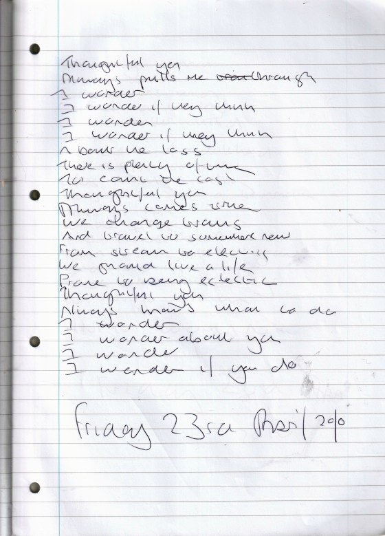 Thoughtful You – Written Friday 23rd April 2010 (Aged 35)