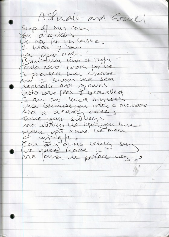 Asphalt and Gravel – Written April 2010 (Aged 35)