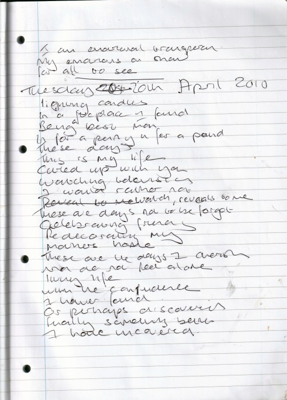 These Days – Written Tuesday 20th April 2010 (Aged 35)