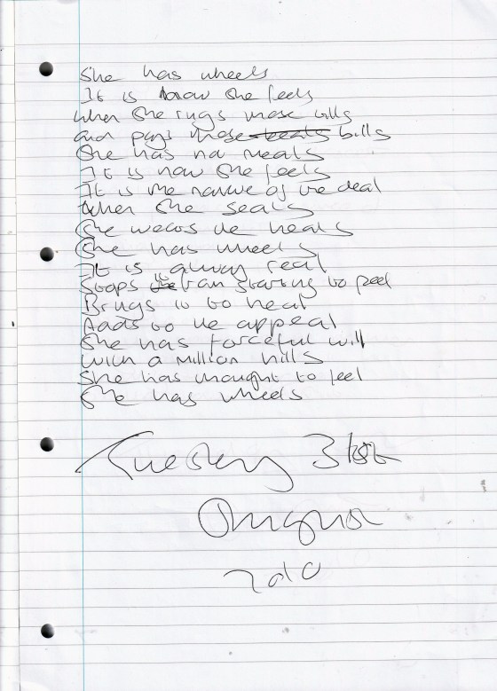She Has Wheels – Written Tuesday 31st August 2010 (Aged 35)