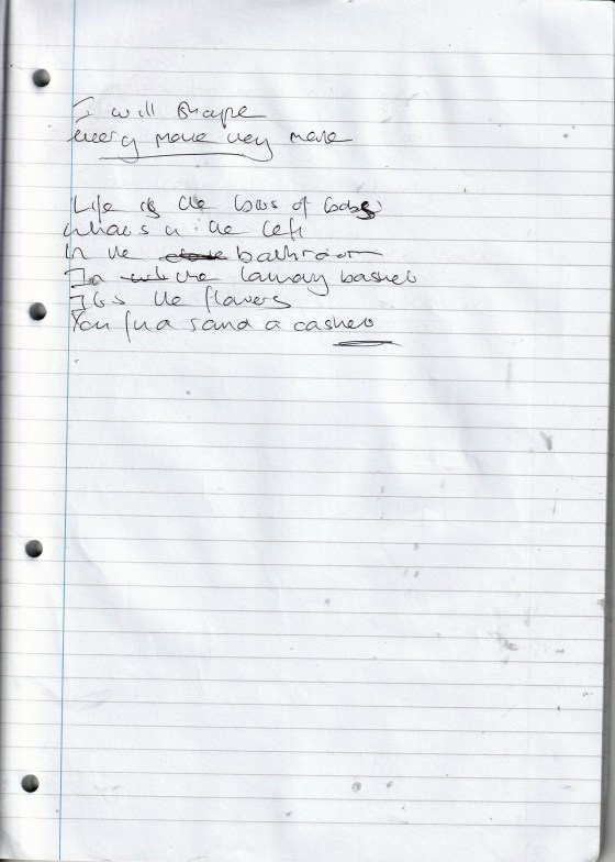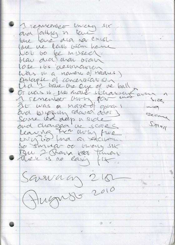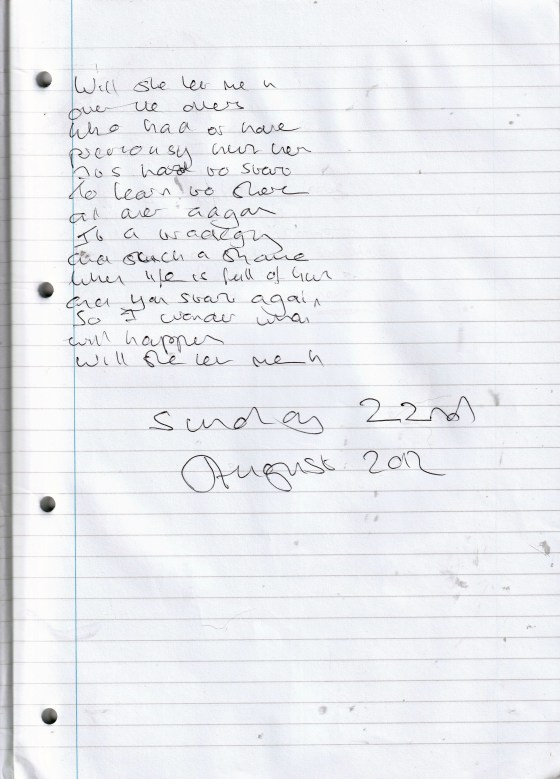 Will She Let Me In – Written Sunday 22nd August 2010 (Aged 35)