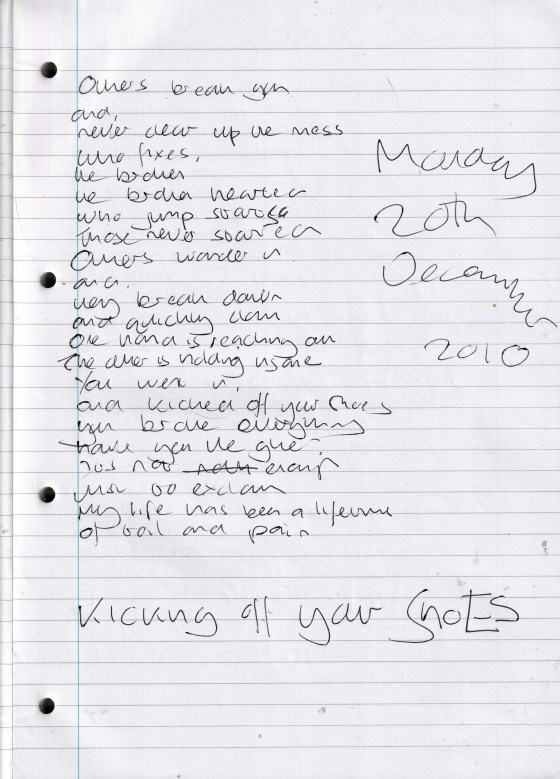 Kicking Off Your Shoes – Written Monday 20th December 2010 (Aged 35)