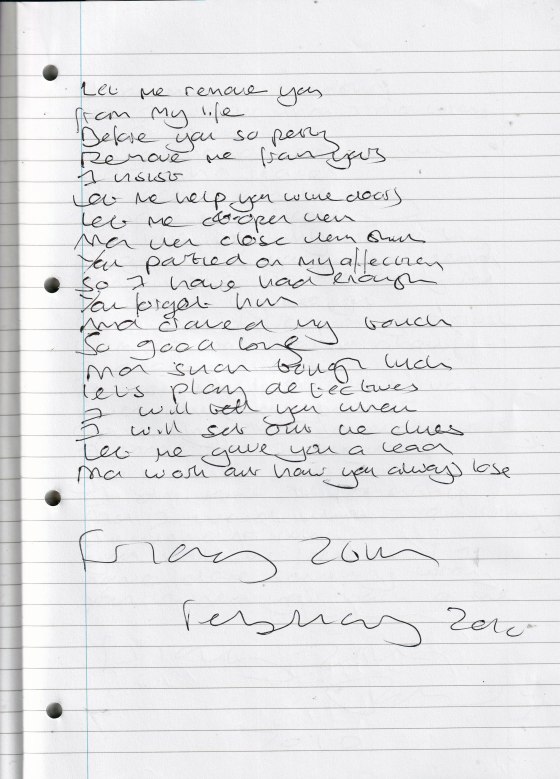 Let Me Remove You – Written Friday 26th February 2010 (Aged 35)