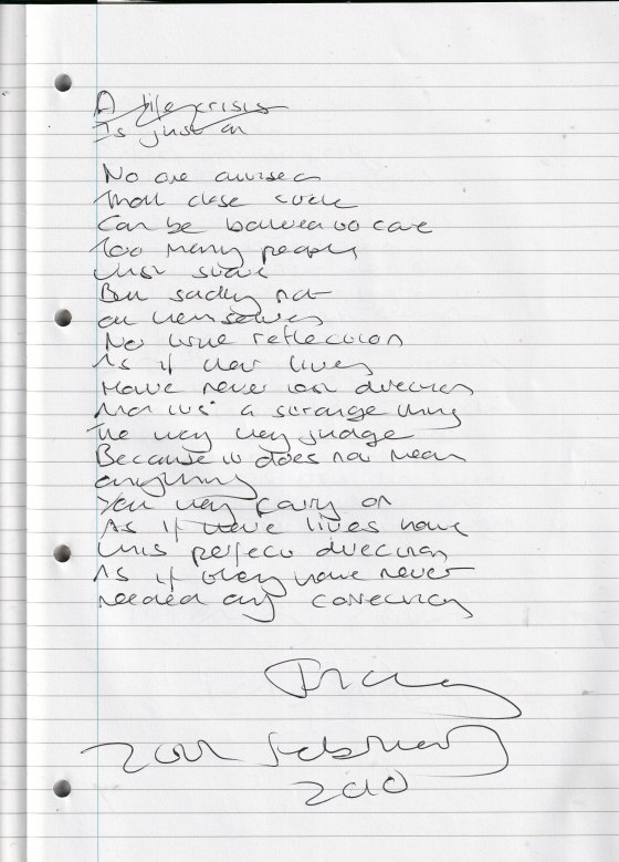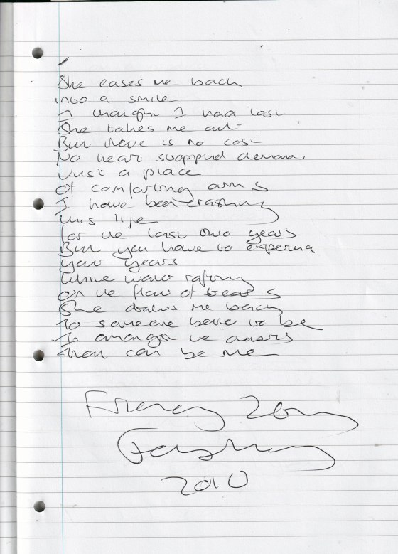 She Eases Me Back into a Smile – Written Friday 26th February 2010 (Aged 35)
