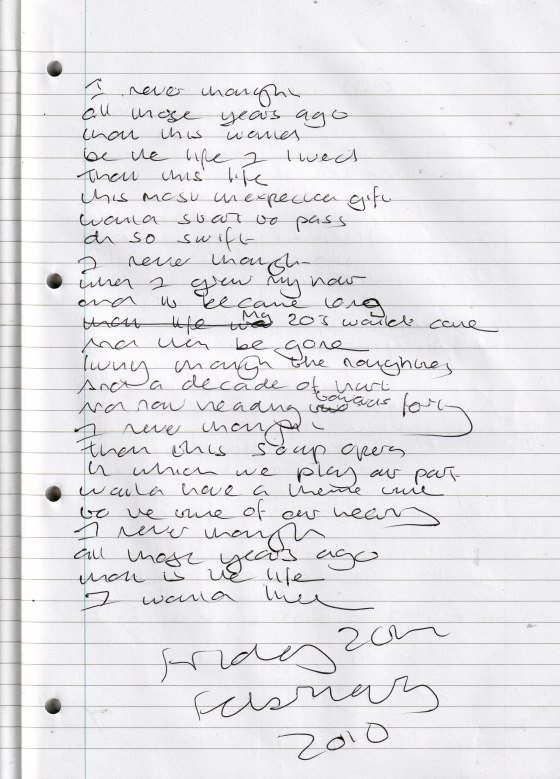 Our Friendship – Written Friday 26th February 2010 (Aged 35)