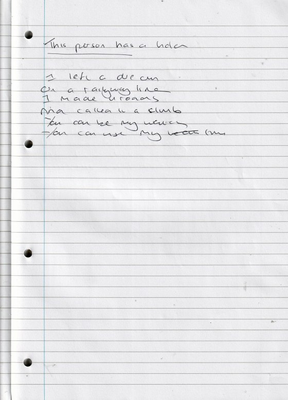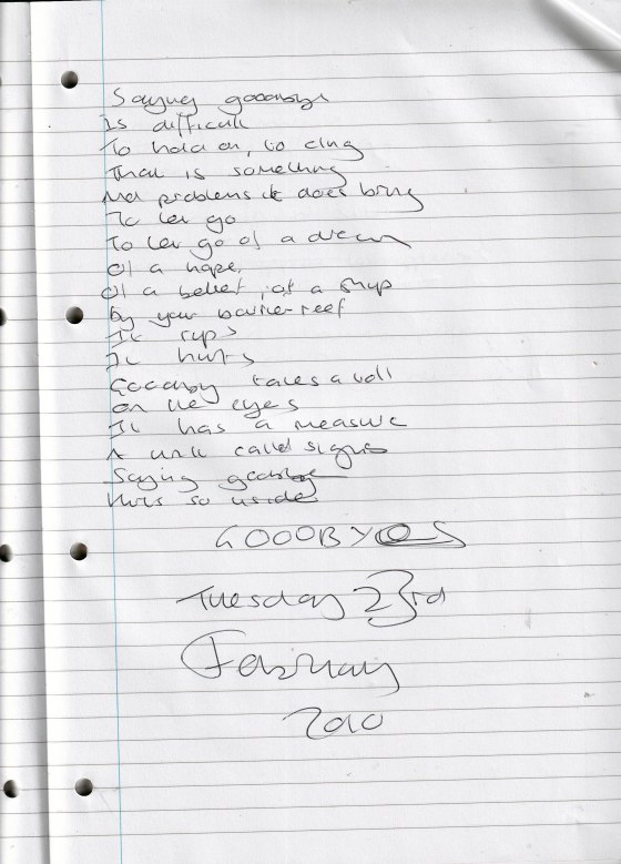 Goodbye – Written Tuesday 23rd February 2010 (Aged 34)