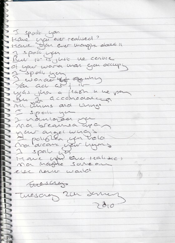 Tell Me All About Your Jealously – Written Tuesday 5th January 2010 (Aged 34)