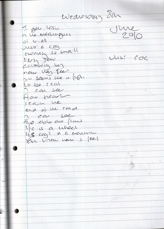 Just A Cog – Written Wednesday 8th June 2010 (Aged 35)