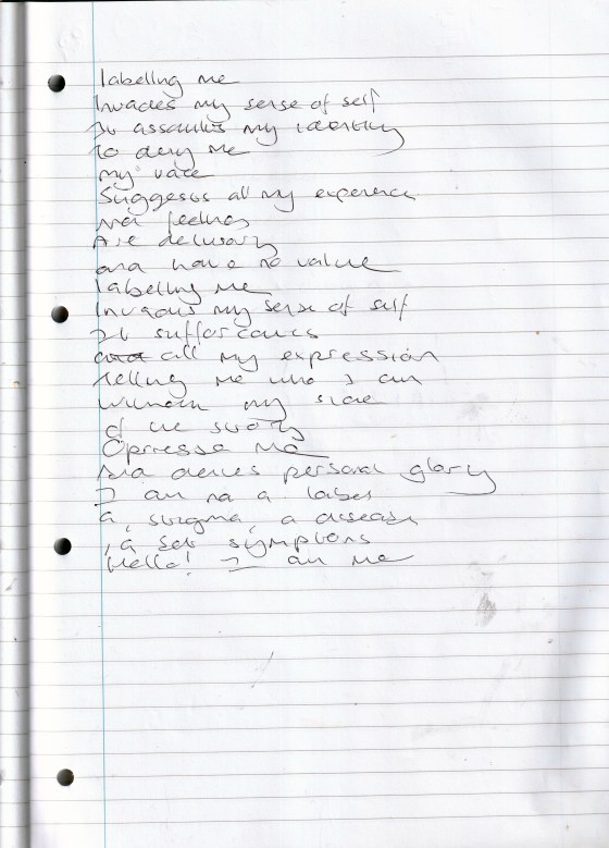 Sense of Self – Written June 2010 (Aged 35)