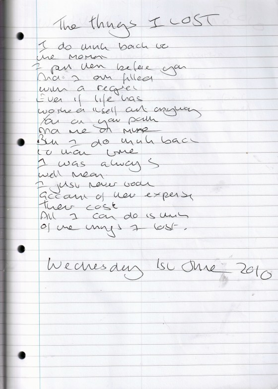 The Things I Lost – Written Wednesday 1st June 2010 (Aged 35)