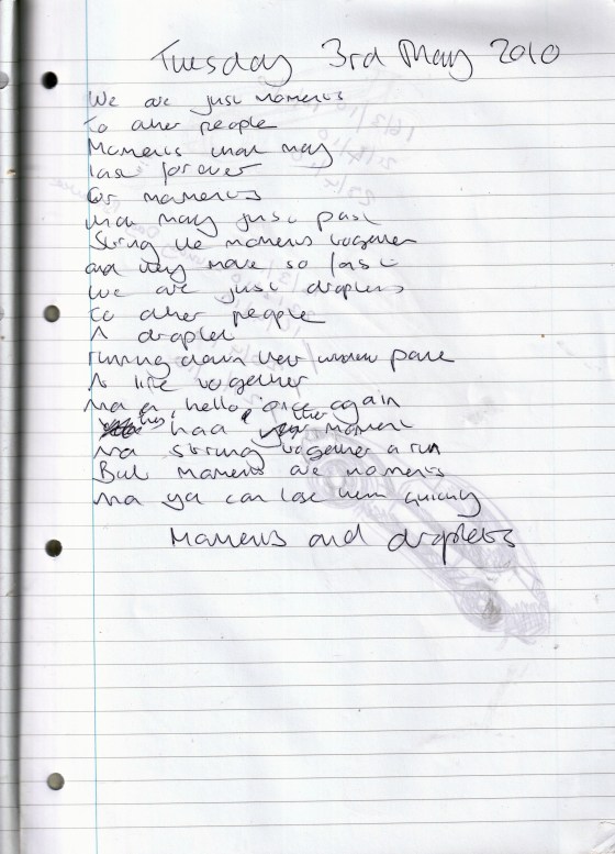Moments And Droplets – Written Thursday 3rd May 2010 (Aged 35)