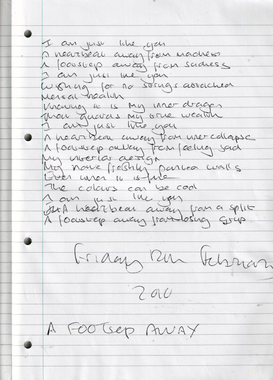 A Footstep Away – Written Friday 12th February 2010 (Aged 34)