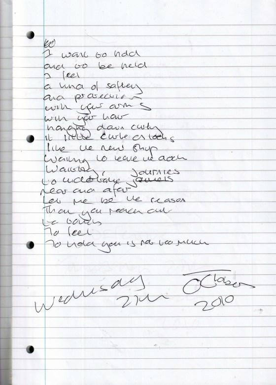 I Want to Hold (Originally Untitled) – Written Wednesday 27th October 2010 (Aged 35)