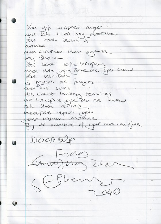 Doorstep – Written Friday 24th September 2010 (Aged 35)