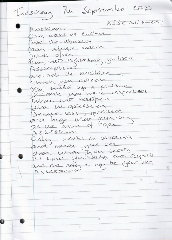 Assessment – Written Tuesday 7th September 2010 (Aged 35)