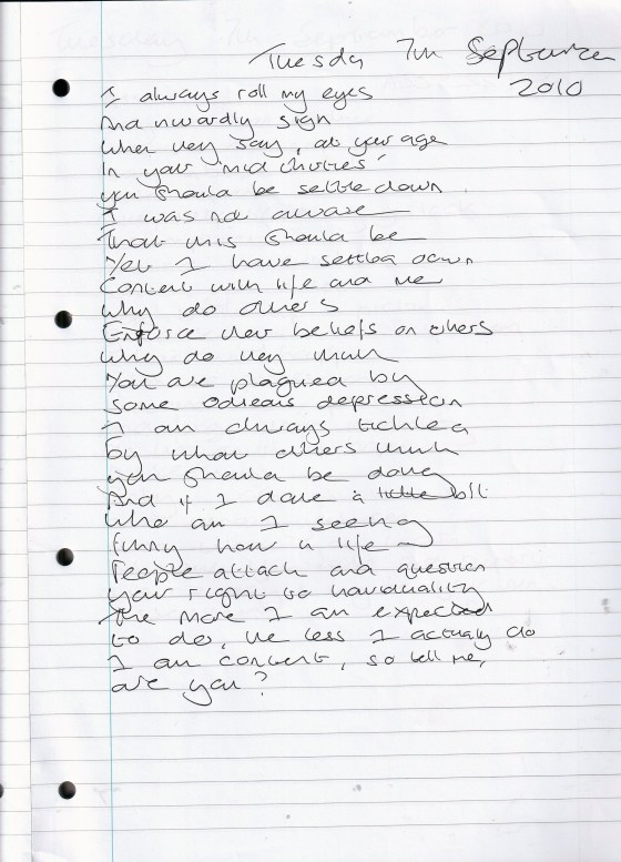 Contentment – Written Tuesday 7th September 2010 (Aged 35)