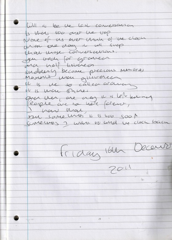 Goodbye – Written Saturday 24th December 2011 (Aged 36)