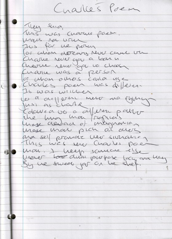 Charlie’s Poem – Written January 2011 (Aged 35)