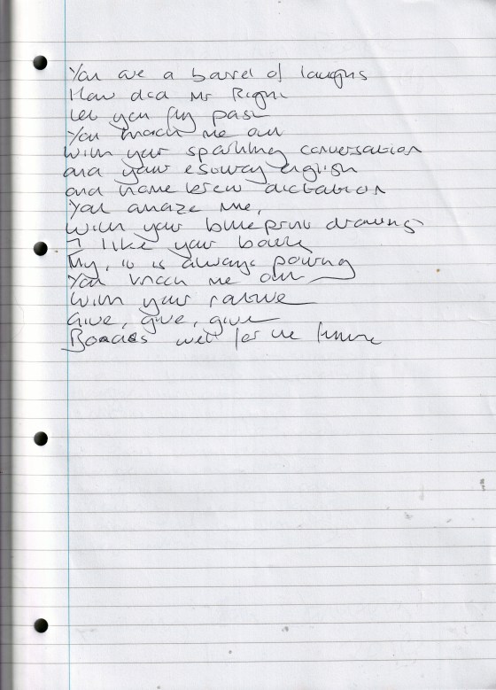 You Stole From the Till – Written Thursday 13th January 2011 (Aged 35)