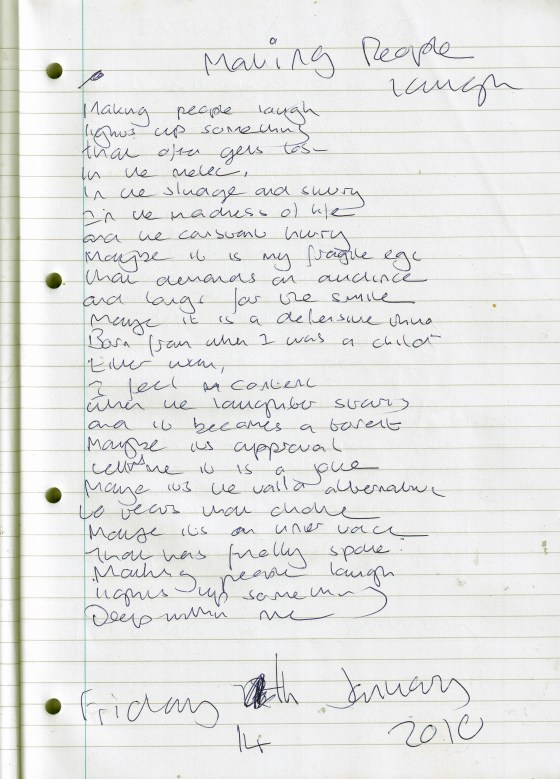 Making People Laugh – Written Friday 14th January 2011 (Aged 35)