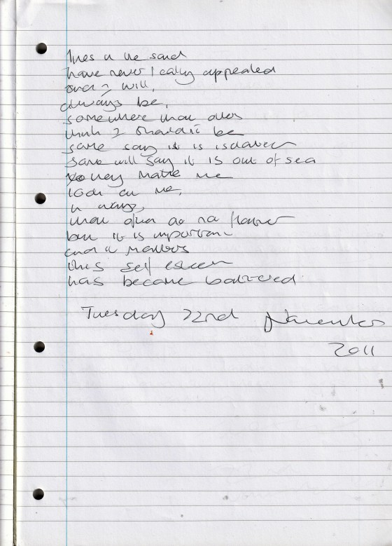 Life Experience – Written Thursday 17th November 2011 (Aged 36)