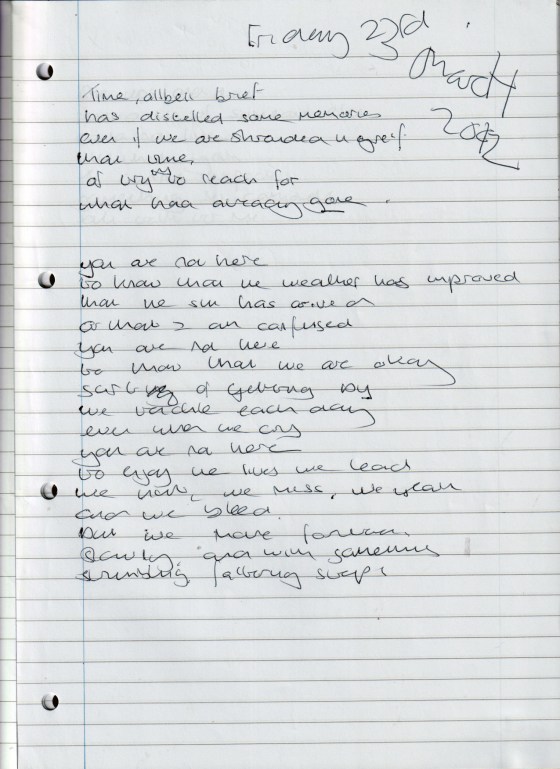 I Was Not Ready to Say Goodbye (Originally Untitled) – Written April 2012