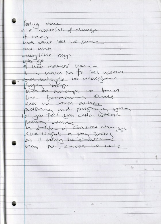 The Sunshine Has Escaped – Written Friday 6th January 2012 (Aged 36)