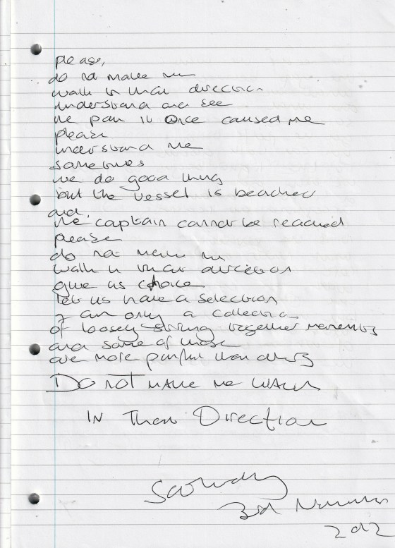 Do Not Make Me Walk in That Direction – Written Saturday 3rd November 2012 (Aged 37)