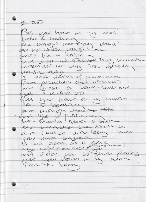 I Put My Arms Around You – Written November 2012 (Aged 37)