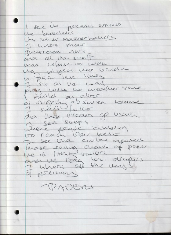 Traders i see the previous tradersthe butchers,the no so master bakersand i – inherit their shattered hurt all the, ‘stuff’,that … More