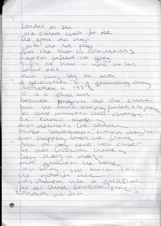 London on Sea – Undated but most likely written late 2013 (Aged 38)