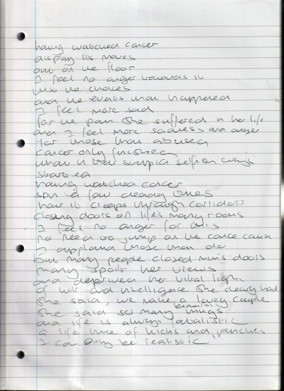 I Feel No Anger having watched cancer display its moves – out on the floor i feel no anger towards … More