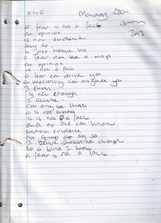 A Fear is Not a Fact (Originally Untitled) – Written Monday 28th January 2013 (Aged 37)