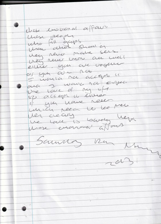 Emotional Affairs – Written Sunday 12th October 2013 (Aged 38)