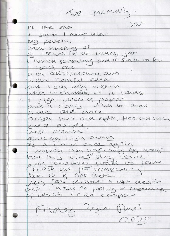 The Memory Jar – Written Friday 24th April 2020 (Aged 45)