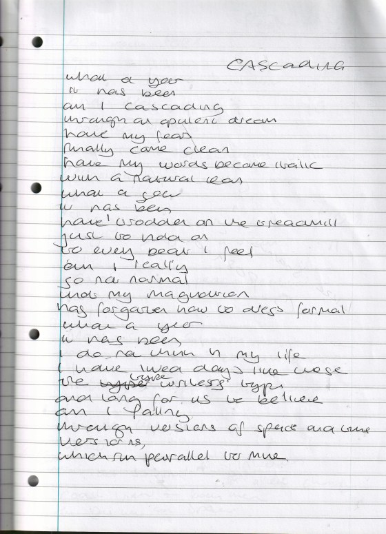 Cascading – Written Tuesday 14th April 2020 (Aged 45)