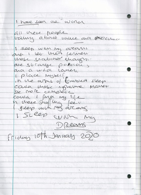 I Sleep With My Dreams – Written Friday 10th January 2020 (Aged 44)