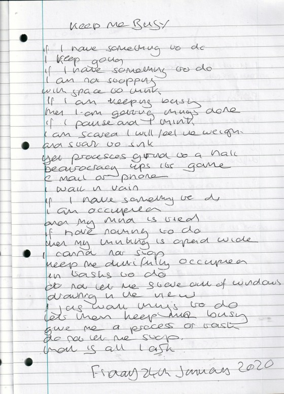 Keep Me Busy – Written Friday 24th January 2020 (Aged 44)
