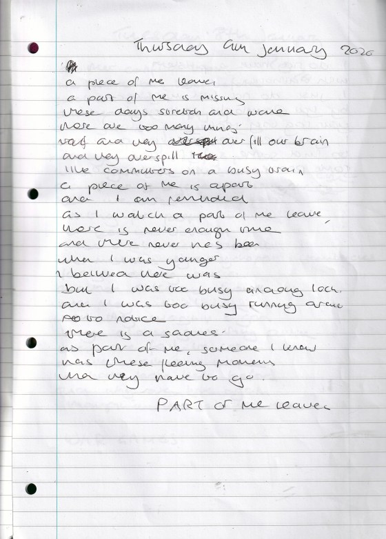 Part of Me Leaves – Written Thursday 9th January 2020 (Aged 44)