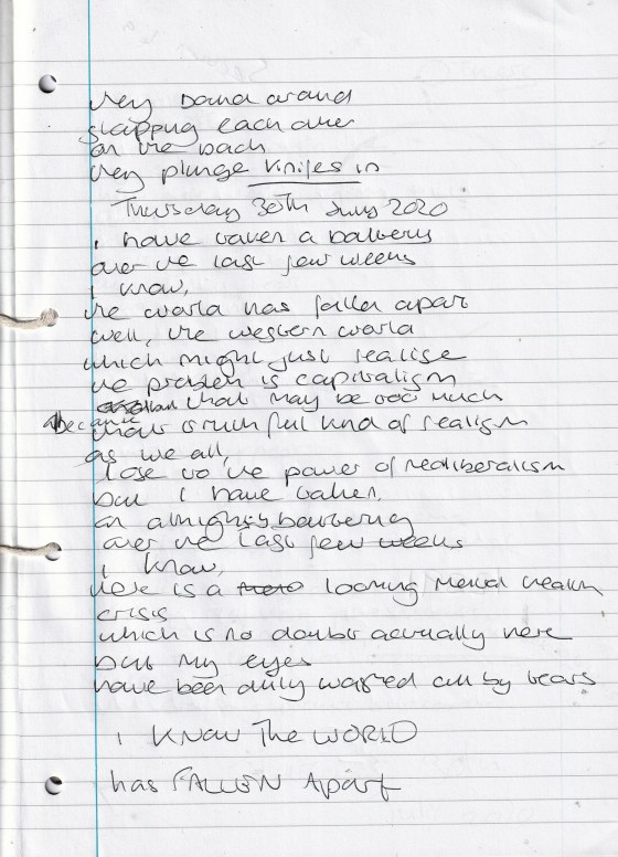 I Know The World Has Fallen Apart – Written Thursday 30th July 2020 (Aged 45)