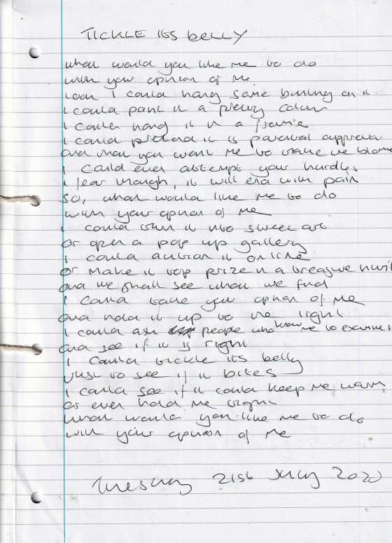 Tickle It’s Belly – Written Tuesday 21st July 2020 (Aged 45)