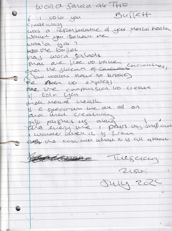 Word Salad at The Buffet – Written Tuesday 21st July 2020 (Aged 45)