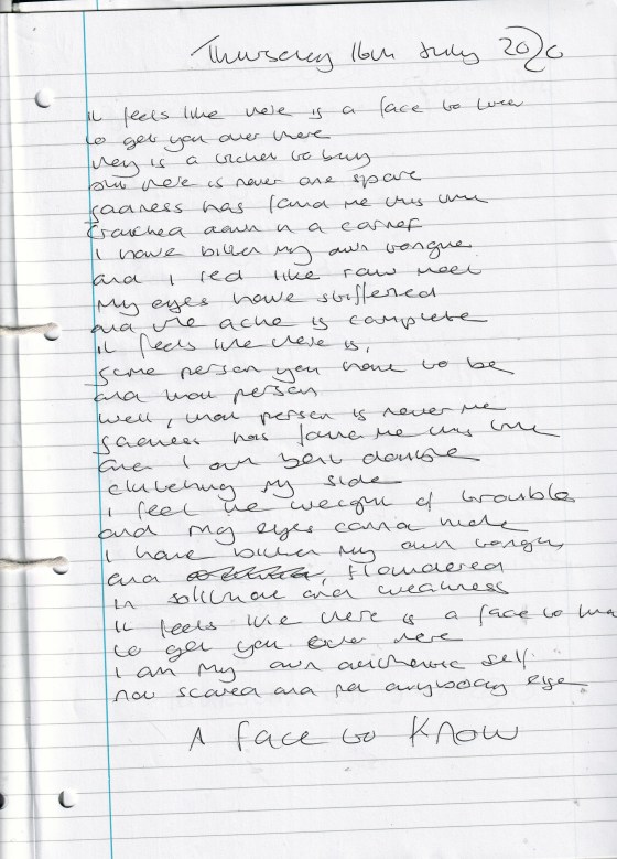 A Face to Know – Written Thursday 16th july 2020 (Aged 45)