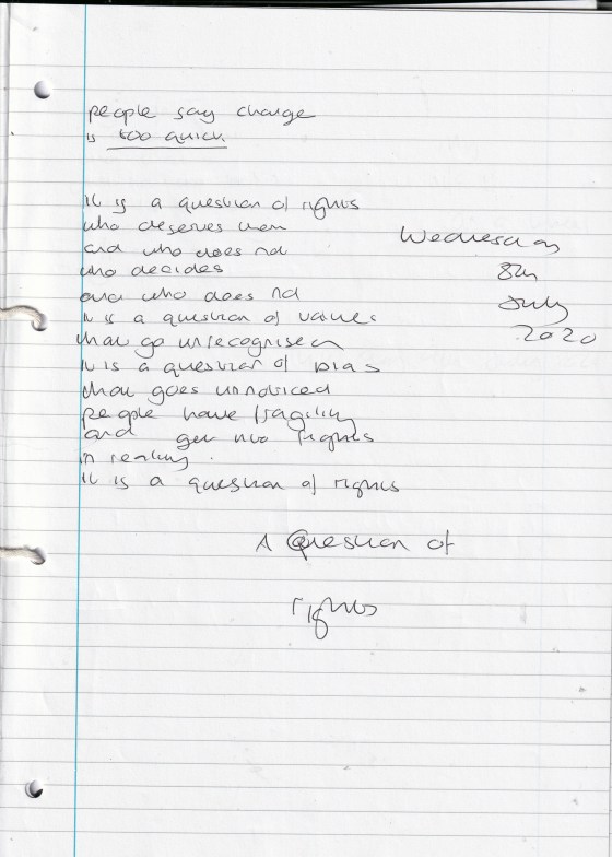 A Question of Rights – Written Wednesday 8th July 2020 (Aged 45)