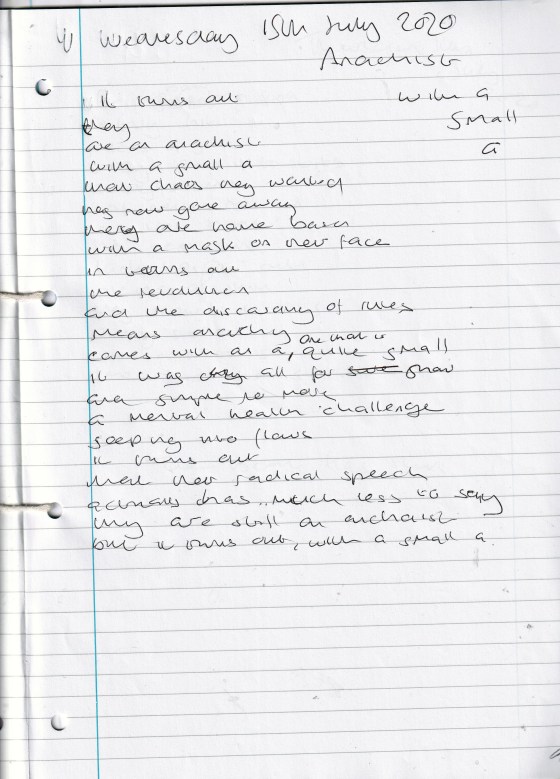 Anarchist With a Small A – Written Wednesday 15th July 2020 (Aged 45)