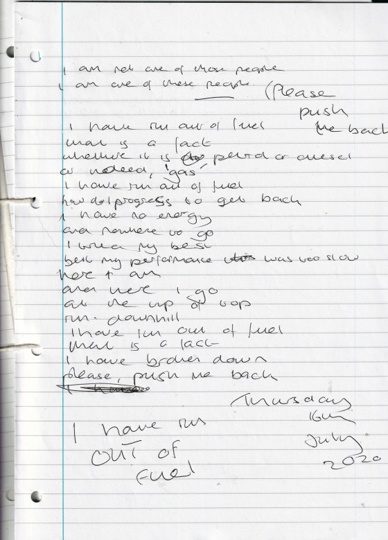 I Am Struggling, I Am Struggling – Written Thursday 16th July 2020 (Aged 45)