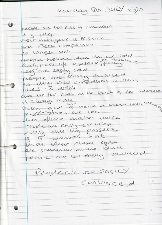People Are Easily Convinced – Written Monday 13th July 2020 (Aged 45)