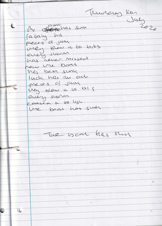 The Boat Has Sunk – Written Thursday 16th July 2020 (Aged 45)